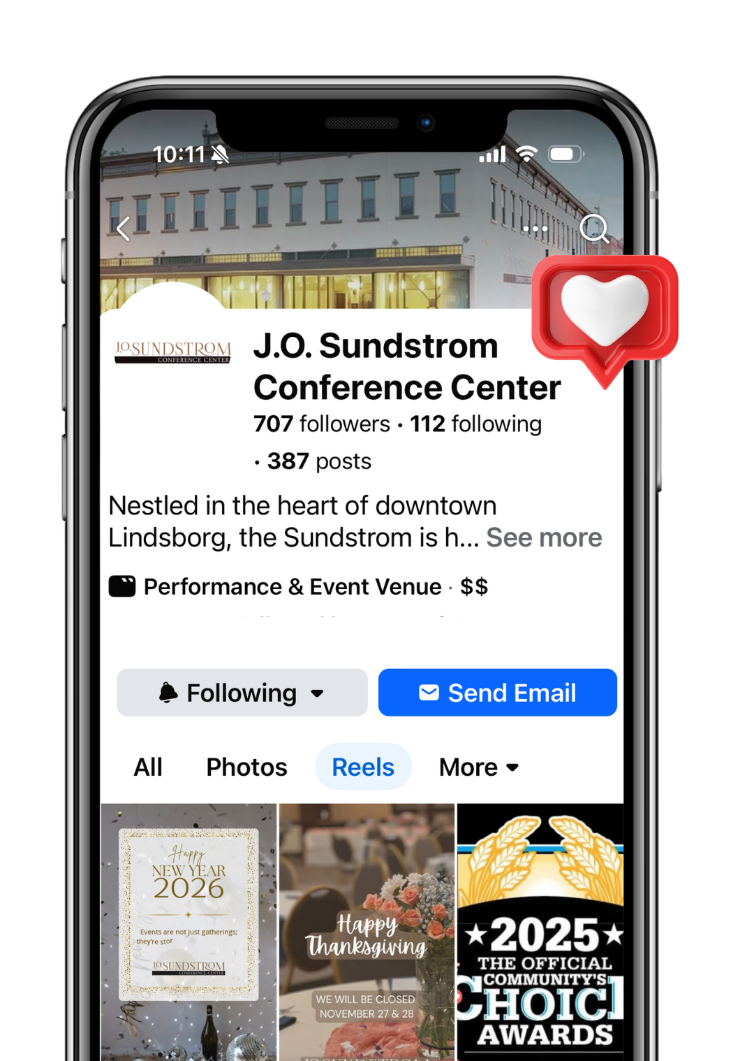 FIND OUT MORE ABOUT THE SUNDSTROM AND LINDSBORG BY FOLLOWING THE J.O. SUNDSTROM CONFERENCE CENTER AND VISIT LINDSBORG ON YOUR SOCIAL MEDIA ACCOUNTS.
